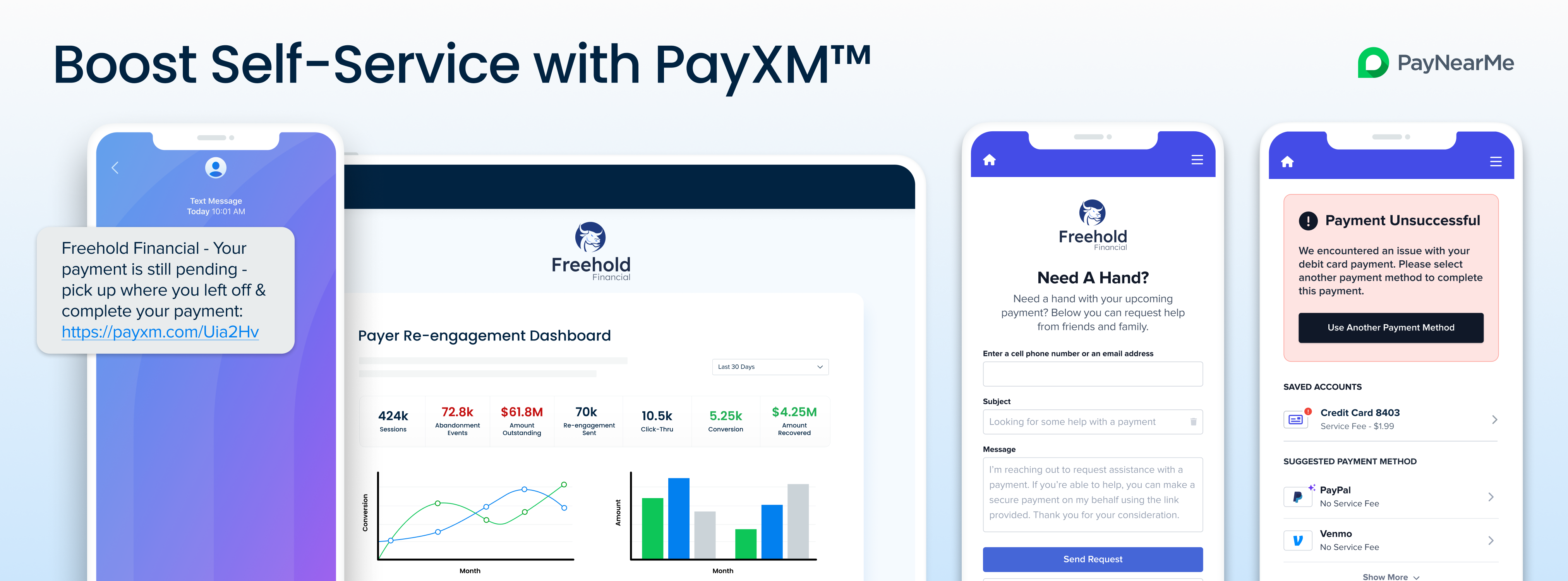 SANTA CLARA, Calif., March 31, 2026—PayNearMe, a leading fintech transforming the payment experience, today announced new capabilities within its PayXM platform designed to keep payers in the self-service channel—or bring them back—so that payments can be completed more efficiently. The new capabilities, Payer Re-Engagement, Dynamic Payment Options and Invite a Payer, extend PayNearMe’s vision of Payment Experience Management by delivering faster, more intuitive payment experiences while helping businesses accelerate payments and reduce the total cost of acceptance.